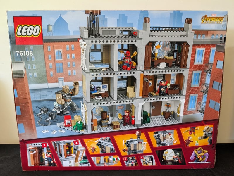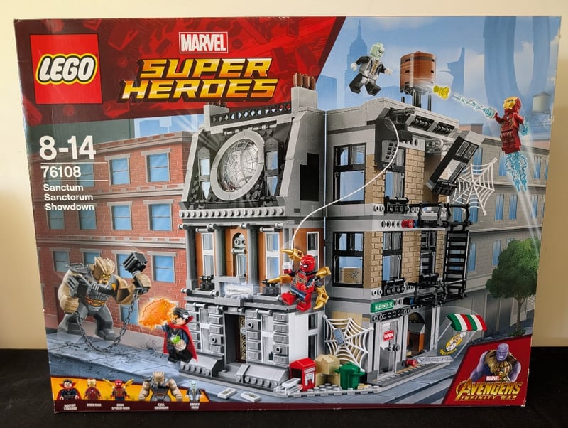 LEGO MARVEL SUPER HEROES 76108 SANCTUM SANCTORUM SHOWDOWN SETItem Size: Height: 35cm, Width: 35cm, Depth: 35cm, Weight: 3KgLego Marvel Super Heroes Set 76108 Featuring The Iconic Sanctum Sanctorum Building With Detailed Architecture, Multiple Minifigures Including Doctor Strange And Iron Man, Rotating Elements, And Accessory Pieces. Set Comprises Modular Construction With Street-Level And Upper-Floor Playable Spaces, Architectural Detailing With Brick Construction, And Thematic Marvel Avengers Branding.Condition: Good - Refer To Images584531+56
