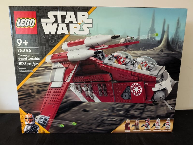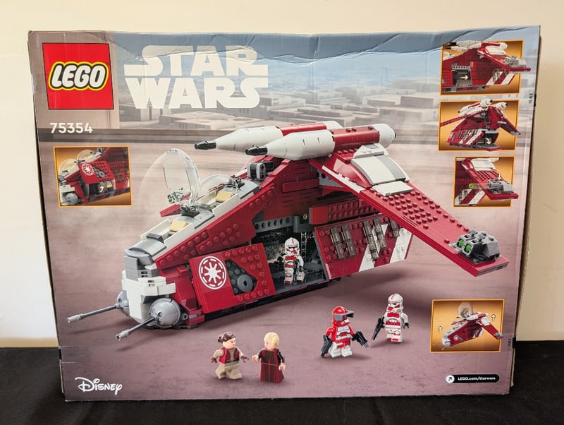 LEGO STAR WARS CORUSCANT GUARD GUNSHIP SET 75354Item Size: Height: 40cm, Width: 40cm, Depth: 40cm, Weight: 4KgLego Star Wars Set 75354 Featuring The Coruscant Guard Gunship, A Red And White Spacecraft With Opening Cockpit, Dual Rotating Cannons, And Deployable Landing Gear.Condition: Good - Refer To Images584531+57