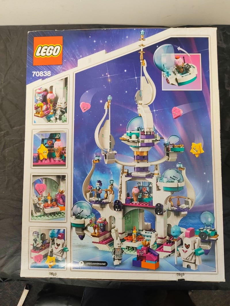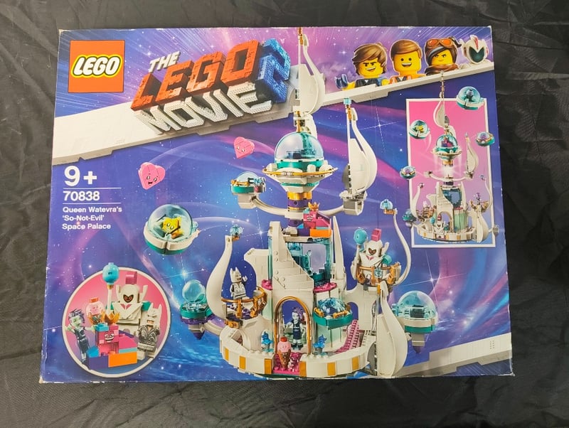 LEGO THE LEGO MOVIE 2 QUEEN WATEVRA'S 'SO-NOT-EVIL' SPACE PALACE SET 70838Item Size: Height: 45cm, Width: 55cm, Depth: 7cm, Weight: 3KgSealed Lego Set 70838 From The Lego Movie 2 Franchise Featuring Queen Watevra'S Elaborate Space Palace. This 9+ Age-Rated Construction Set Includes Multiple Modular Dome Chambers With Working Elevators, Suspended Gondolas, And Detailed Minifigures. The Architectural Design Showcases Pastel-Coloured Turquoise And Cream Elements With Vibrant Accent Pieces, Representing The Whimsical Alien Palace Aesthetic. Complete With Original Packaging Displaying Comprehensive Product Imagery And Construction DCondition: Good - Refer To Images584531+72