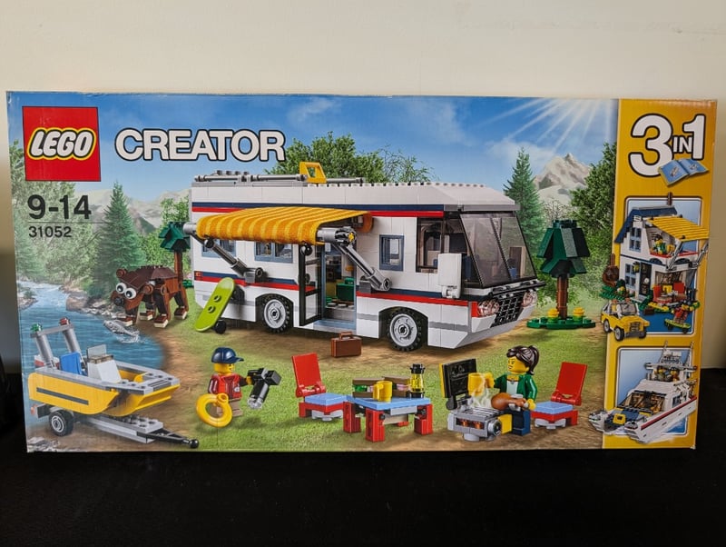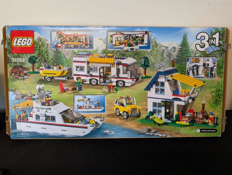 LEGO CREATOR 3-IN-1 VACATION CAMPER SET 31052Item Size: Height: 60cm, Width: 35cm, Depth: 35cm, Weight: 3KgLego Creator Set 31052 Featuring A Multi-Configuration Camper Van With Motorboat And Beach House Variants. This 3-In-1 Construction Set Includes A Detailed Recreational Vehicle With Opening Cabin, Awning, And Functional Elements, Accompanied By A Yellow Jet Ski, Fishing Boat With Cabin, Complementary Minifigures, And Landscaping Accessories. Suitable For Ages 9-14, The Set Showcases Realistic Camping And Recreational Scenarios With Modular Building Possibilities Across Three Distinct ConfiguratiCondition: Good - Refer To Images584531+85