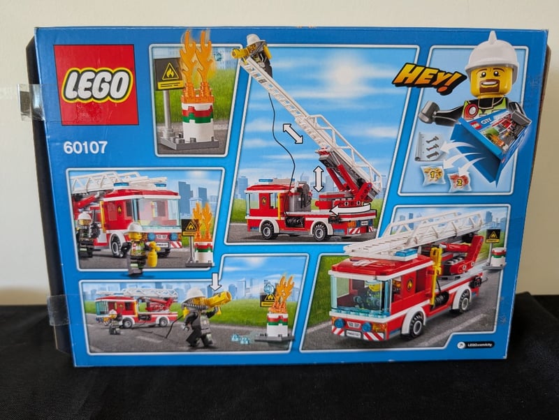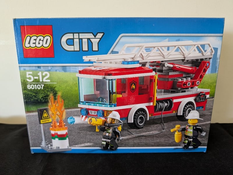 LEGO CITY FIRE LADDER TRUCK SET 60107Item Size: Height: 37cm, Width: 26cm, Depth: 10cm, Weight: 2KgLego City Fire Ladder Truck Set 60107 (5-12 Years) Featuring A Detailed Red Fire Engine With Extendable Ladder Mechanism, Command Cabin With Opening Doors, And Articulated Boom Arm. Set Includes Three Minifigures (Firefighters In Yellow And Black Uniforms), Flame Elements, Fire Hazard Warning Sign, Water Droplet Accessories, And Ladder Truck With Functional Turntable. Original Factory-Sealed Box With Comprehensive Assembly Imagery And Age-Appropriate Building Instructions.Condition: Good - Refer To Images584531+96