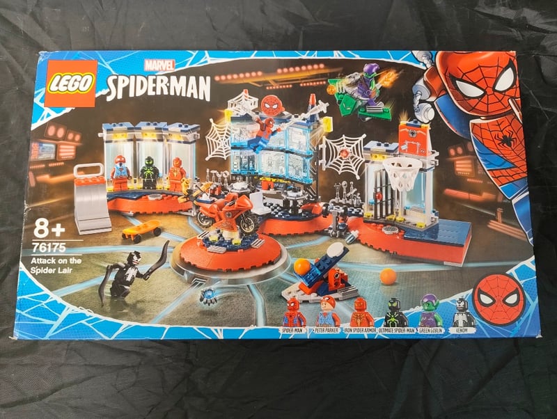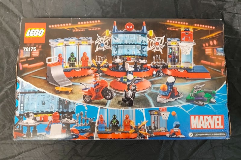 LEGO MARVEL SPIDER-MAN ATTACK ON THE SPIDER LAIR SET 76175Item Size: Height: 26cm, Width: 56cm, Depth: 38cm, Weight: 4KgLego Marvel Spider-Man Set 76175 Featuring A Multi-Level Spider Lair Playset With Modular Construction Elements Including Office Building Sections, Training Area With Red Platforms, And Villain Showcase. Includes Minifigures Of Spider-Man, Peter Parker, Iron Spider Armor, Green Goblin, And Venom. Features Red Motorcycle, Articulated Villain Figure, Multiple Web Elements, And Interactive Play Spaces. Recommended Age 8+.Condition: Good - Refer To Images584531+38