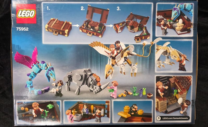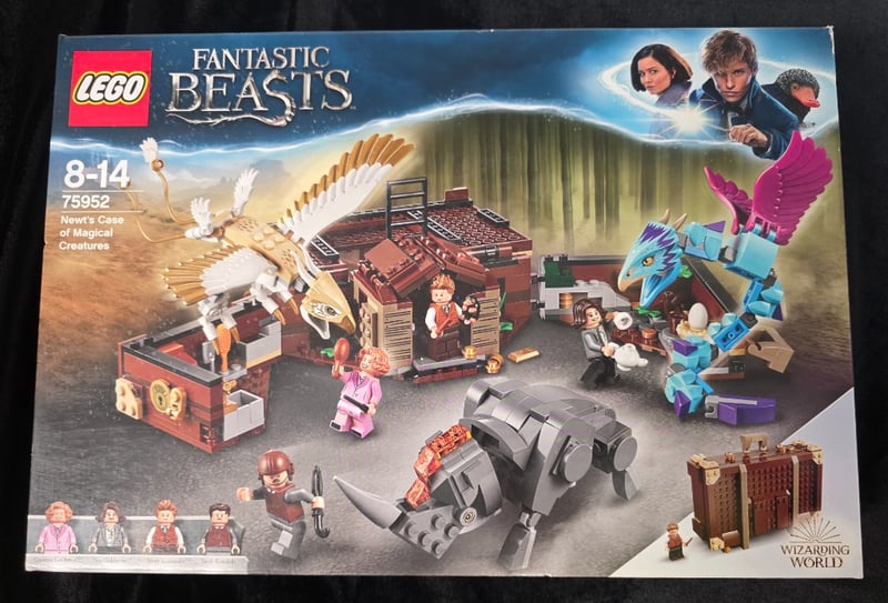Complete Lego Fantastic Beasts Set 75952 Featuring Newt'S Case Of Magical Creatures. Includes Buildable Magical Creatures (Niffler And Bowtruckle), Transformable Suitcase Structure With Interior And Exterior Configurations, Minifigures (Newt Scamander, Tina Goldstein, Jacob Kowalski, And Queenie Goldstein), And Assorted Accessories. Age Range 8-14 Years. Original Sealed/Unused Condition With All Components Intact.