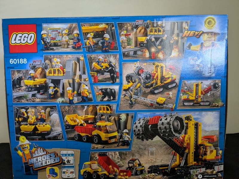 LEGO CITY MINING EXPERTS SITE SET 60188Lego City Mining Experts Site Set 60188, Age Range 7-12 Years. This Comprehensive Construction Set Features A Detailed Mining Operation With Multiple Yellow And Red Vehicles Including An Excavator, Dump Truck, And Tracked Drill With Rotating Auger Mechanism. Includes Minifigures With Hard Hats, Glow-In-The-Dark Elements, And Modular Brick Structures Representing Mine Structures. Original Sealed Packaging With Printed Instruction Manual Visible. Set Showcases Mining Theme With Realistic Earth-MovCondition: Good - Refer To Images584530+114