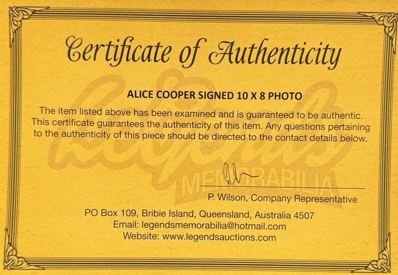 ALICE COOPER SIGNED PHOTO Alice Cooper Personally Signed 10 X 8 Photo. Alice Cooper Is An American Singer And Songwriter. With A Career Spanning Seven Decades, Cooper Is Known For His Raspy Voice And Theatrical Stage Shows Featuring Numerous Props And Illusions. The Item Is Accompanied By A Certificate Of Authenticity.Condition: Good - Refer Images584529+27
