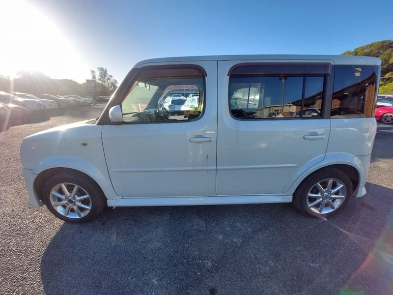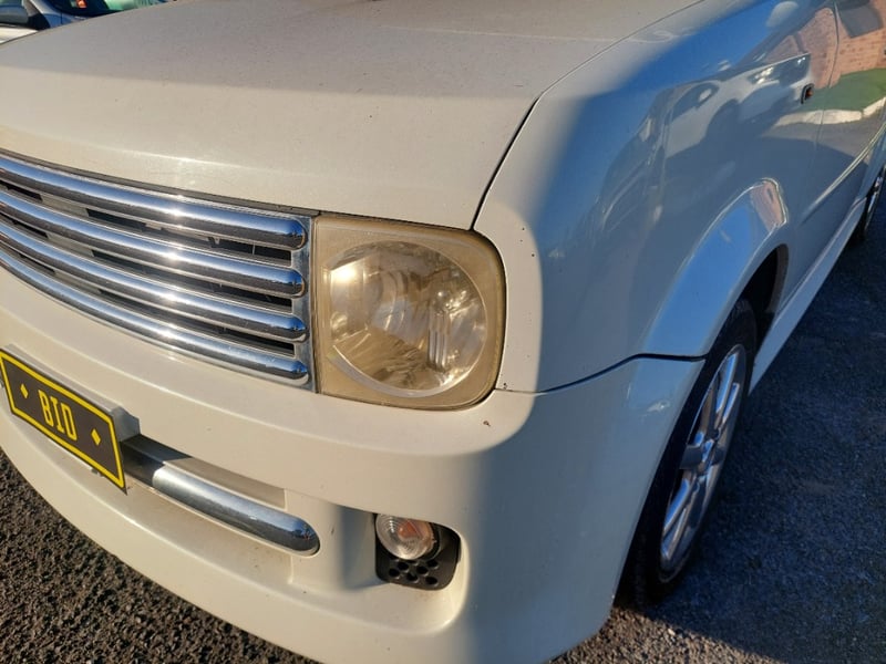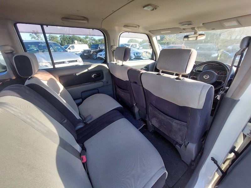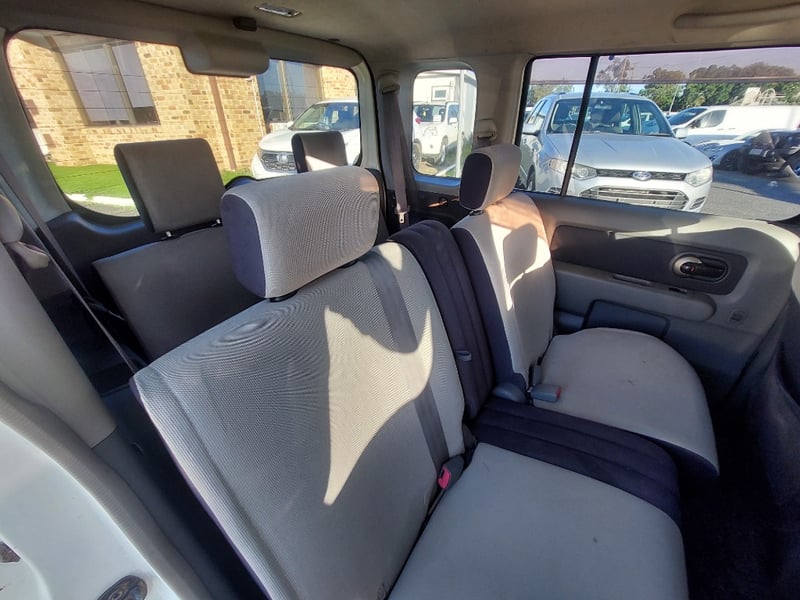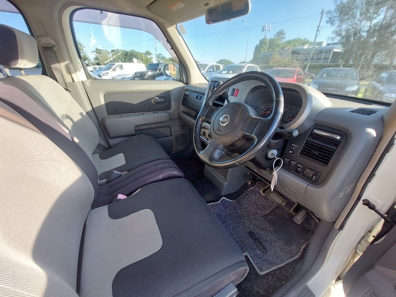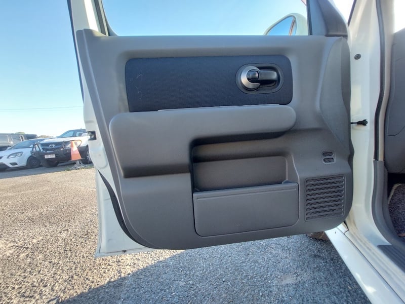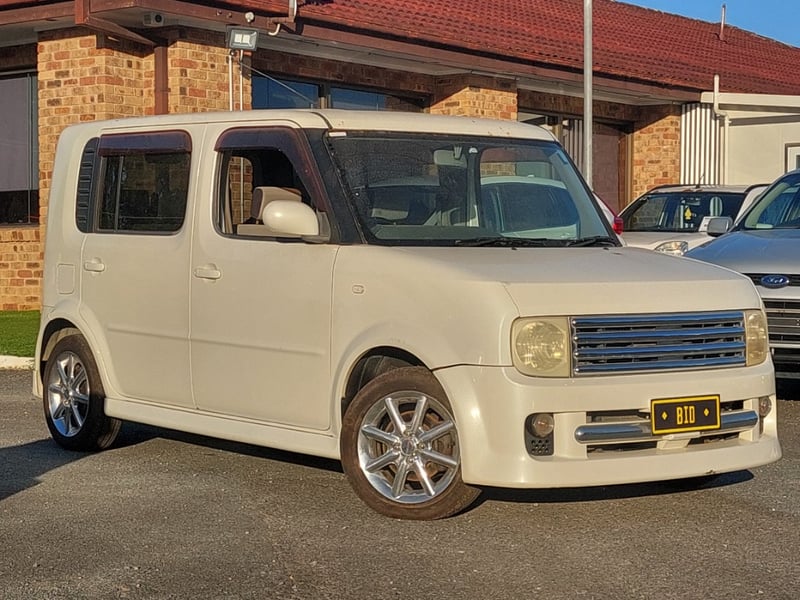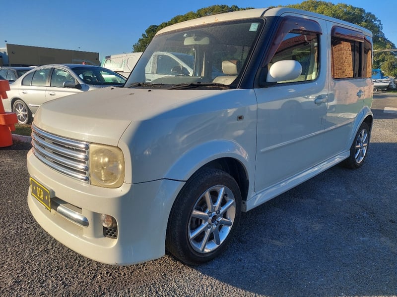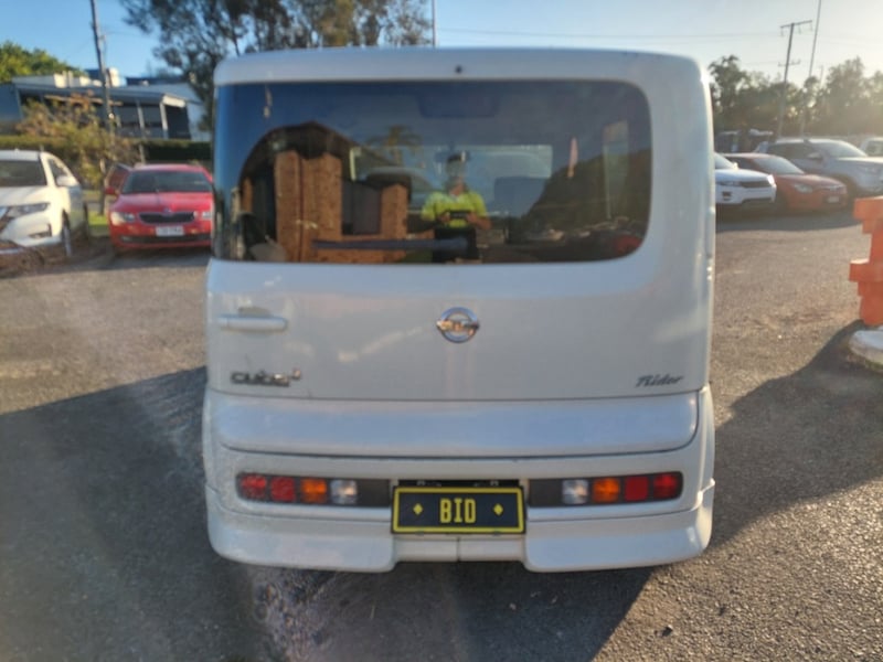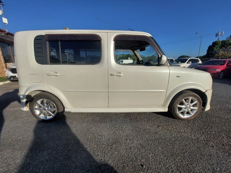 Description/extras: This 2008 Nissan Cube Z12 Rider is a well-proportioned urban hatchback presented in Pearl White with approximately 158,856 kilometres on the odometer. Powered by a 1.4-litre inline four-cylinder petrol engine with aspirated induction coupled to a four-speed automatic transmission, this five-door, five-seater vehicle offers practical everyday motoring with front-wheel-drive traction. The compact exterior dimensions belie a surprisingly spacious interior typical of the Cube's design philosophy. The vehicle retains its original owner's manual documentation. The Rider trim level provides enhanced specification over base models. Queensland registration applies. Extensive surface rust and corrosion to door panels and body trim, oxidised headlight lenses, paint chips and scratches to body panels, minor dents to roof and boot lid, tyre wear evident across all four wheels, general weathering to exterior trim and rubber seals.. Inspection recommended.