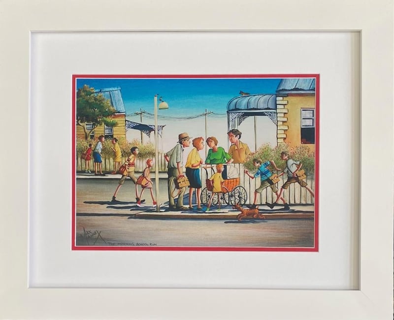 MAX MANNIX Open Edition Print Title: The Morning School Run Image Size: 20.5cm x 30.5cm Condition: Good - Refer Images Framed Using Double Mats, Glass And A White Frame 11606+5