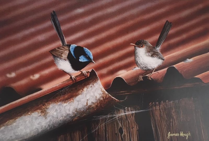 JAMES HOUGHOpen Edition Print Title: Hot Tin Roof Image Size: 17.5cm x 26.5cm Condition: Good - Refer Images Framed Using Glass And A White Frame 11606+7