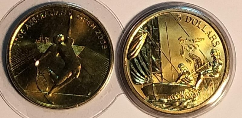 2000 $5 SYDNEY OLYMPIC SAILING & 2005 $5 AUSTRALIAN OPEN PNC Condition: UncMint Issue488584+29