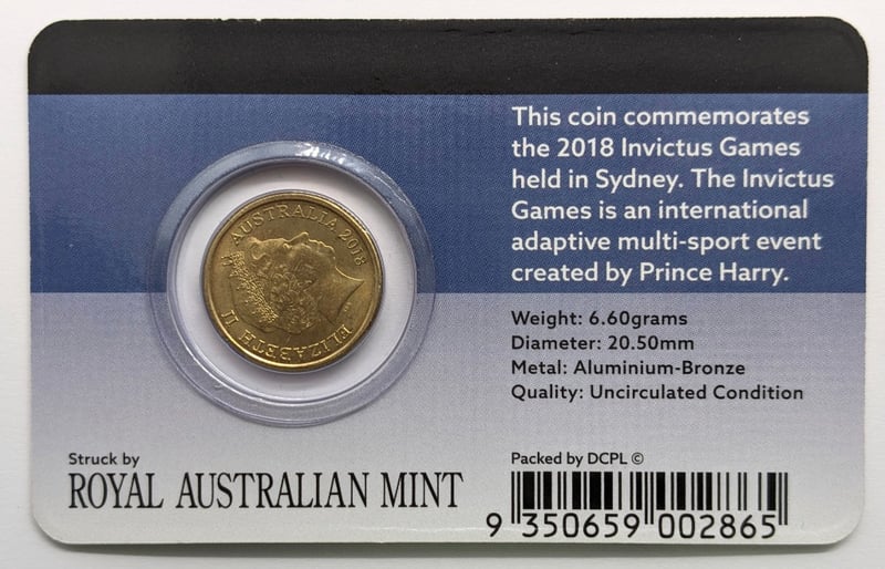 2018 ROYAL AUSTRALIAN MINT $2 ALUMINIUM-BRONZE UNCIRCULATED COIN COMMEMORATING THE INVICTUS GAMES SYDNEY. Limited Edition Coin Pack, A Limited Release Of 10,000 Units. Condition: Good FC 163120+5