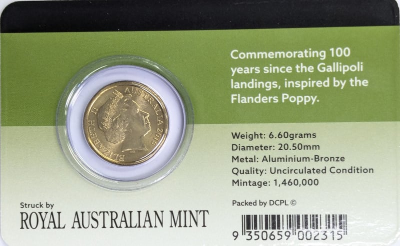 2014 AUSTRALIAN ONE DOLLAR COIN COMMEMORATIVE SET PRODUCED BY THE ROYAL AUSTRALIAN MINT. It Honours Remembrance Day, Featuring Symbols Of Peace Inspired By The Australian Army Rising Sun Badge. Condition: Good FC 163120+10