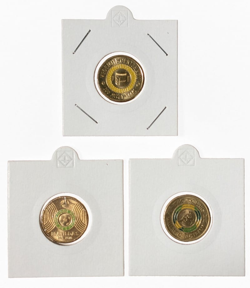 AUSTRALIAN $2 COMMEMORATIVE COINS FEATURING VARIOUS DESIGNS, QTY . 2023 Australian Coloured Two Dollar $2 Commemorating The Matildas Women'S National Soccer Team, 2019 Australian Two-Dollar Coin Celebrating The Wallabies Rugby Union Team, 2023 Vegemite Centenary $2 Coin, Australian 2022 $2 Frontline Workers Commemorative Coin, Australian 2016 "Changeover" $2 Coin, Commemorating The 50Th Anniversary Of Decimal Currency And, 2022 Australian $2 Coin Commemorating Frontline Workers. Condition: Good FC 163120+14