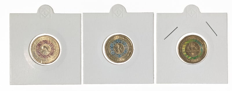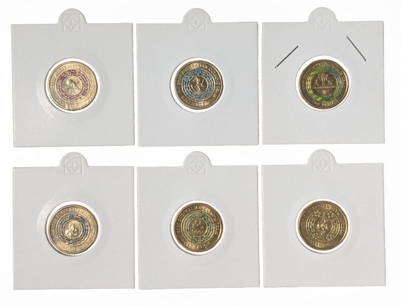 COLLECTION OF AUSTRALIAN $2 COINS RELEASED BY THE ROYAL AUSTRALIAN MINT TO COMMEMORATE THE 2020 TOKYO OLYMPIC AND PARALYMPIC GAMES, QTY 6 COINS. 2020 Australian $2 Coin Featuring A "Courage" Design From The Olympic Team Coin Series, 2020 Australian $2 Coin Commemorating The Australian Olympic Team "Blue Resilience", 2018 Australian Gold Coast Commonwealth Games Colored $2 Coin, 2020 Australian $2 Coin Australian Olympic Team "Passion", 2020 Australian $2 Coin Olympic Team "Dedication", 2020 Australian $2 Coin Olympic Team "Striving". Condition: Good FC 163120+17