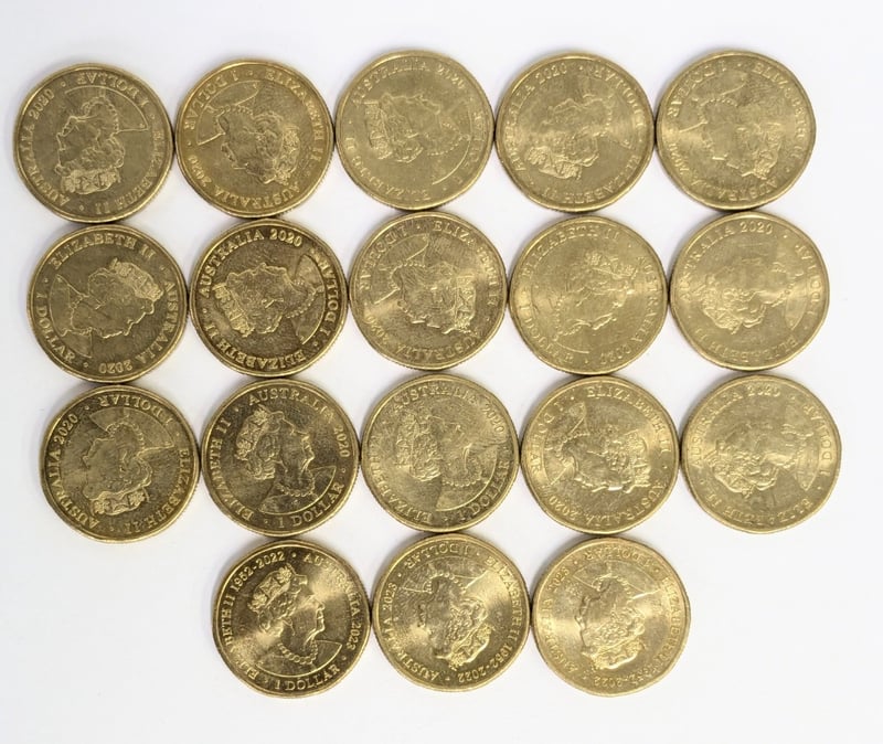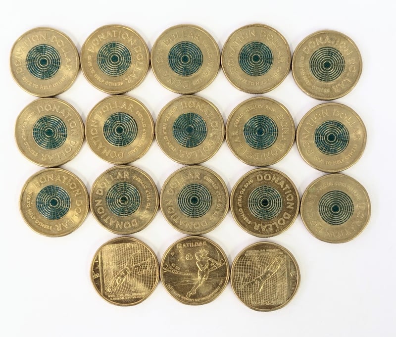 COLLECTION OF AUSTRALIAN COMMEMORATIVE $1 COINS, 18. 2020 Australian $1 Donation Dollar And 2023 Australian $1 Coin Commemorating The Matildas. Condition: Good FC 163120+32
