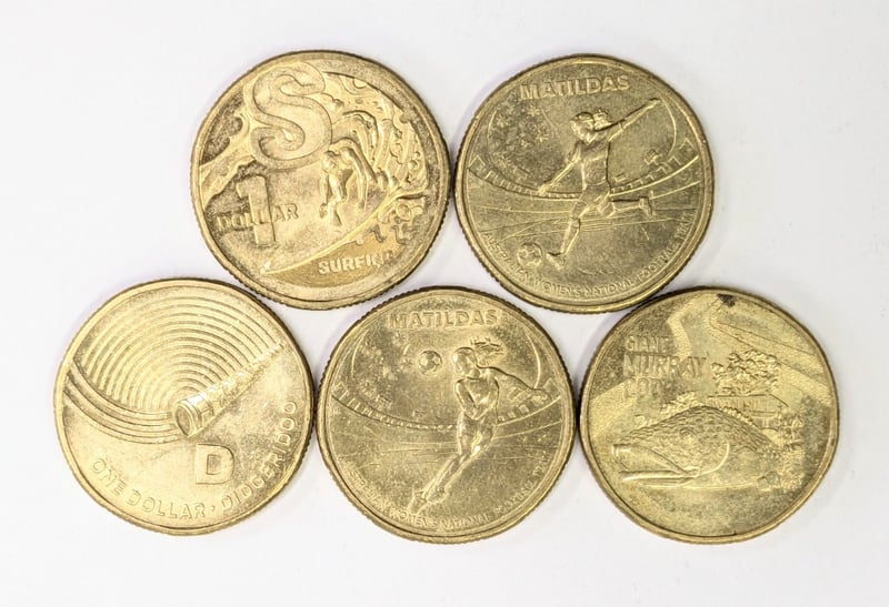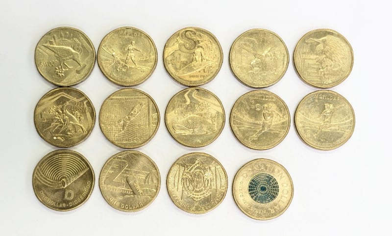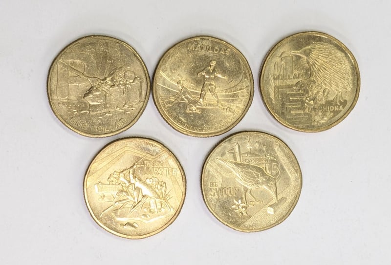 COLLECTION OF COMMEMORATIVE AUSTRALIAN $1 COINS, 15. 2023 Australian $1 Coin The "Big Swoop", 2023 Australian $1 Coin The Matildas, Australian $1 Coin The "Great Australian Coin Hunt" Series, 1997 $1 Coin Sir Charles Kingsford Smith, 2022 Australian $1 Coin Echidna, 2023 Australian One-Dollar Coin Featuring The "Big Lobster", 2023 Australian $1 Coin The Commbank Matildas Goalkeeper, FC 163120+33
