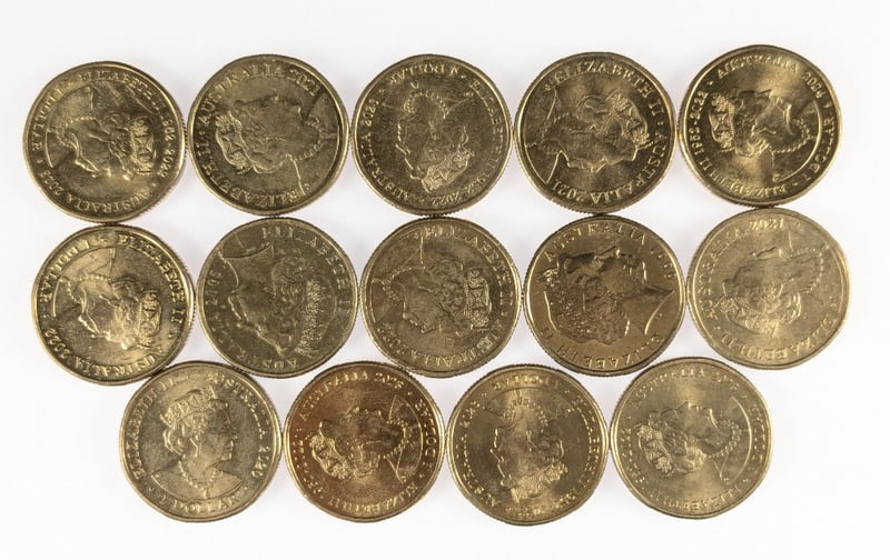 COLLECTION OF AUSTRALIAN COMMEMORATIVE ONE-DOLLAR COINS FROM VARIOUS SERIES, QTY14. The Set Includes Commemorative Coins Such As The "Donation Dollar". Several Coins In This Collection Feature The Australian Women'S National Soccer Team, The "Matildas," Commemorating The 2023 Women'S World Cup. Condition: Good FC 163120+37