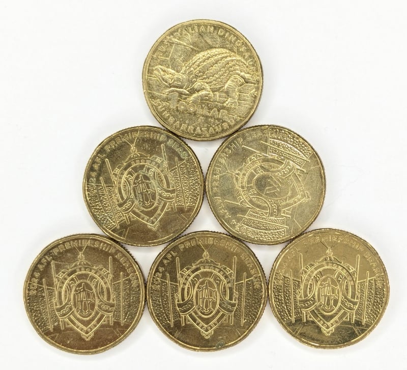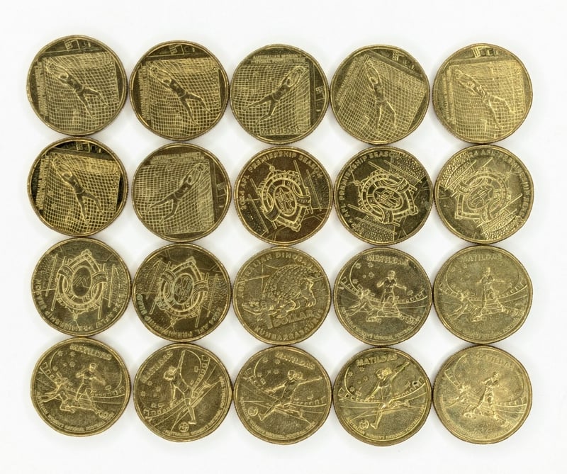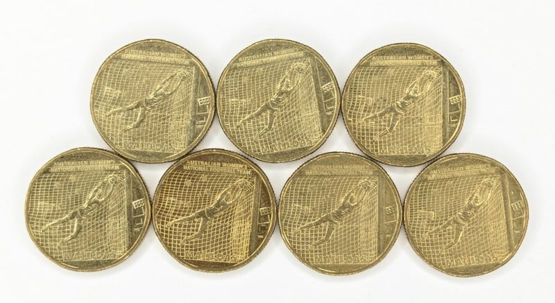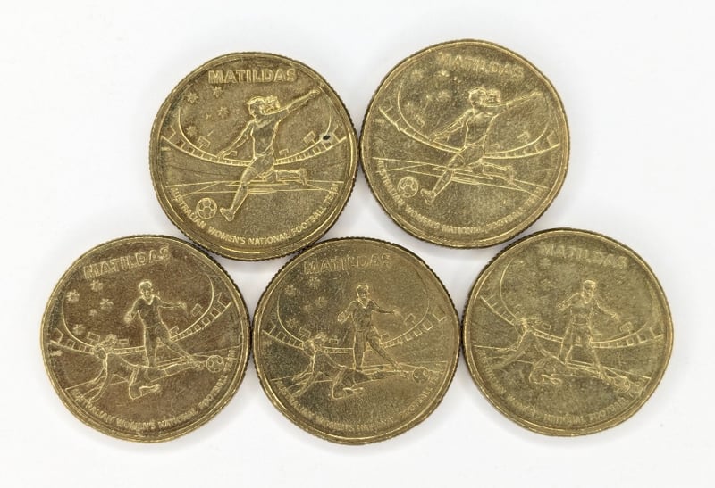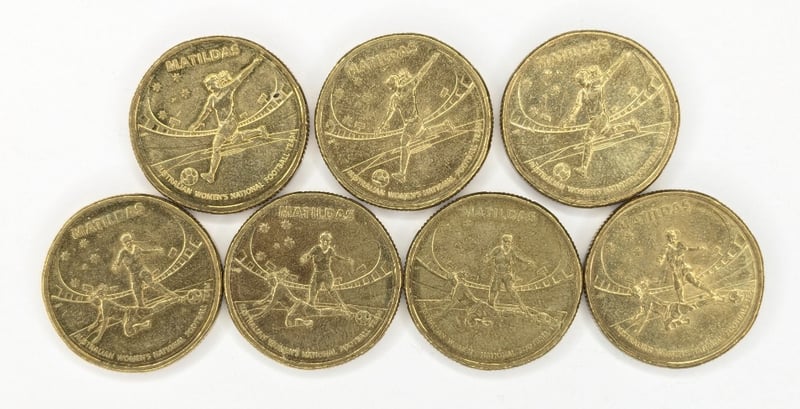COLLECTION OF COMMEMORATIVE AUSTRALIAN ONE-DOLLAR COINS FEATURING DESIGNS RELATED TO THE MATILDAS Collectibles From The 2024 Australian Football League (Afl) Collectable Coin Series, 2023 Matildas Australian Women'S National Football Team Commemorative $1 Coins, Australian $1 Coins From 2023 That Feature A Commemorative Design Celebrating The Australian Women'S National Football Team. Condition: Good FC 163120+39