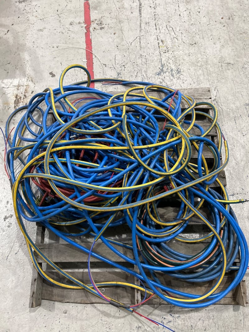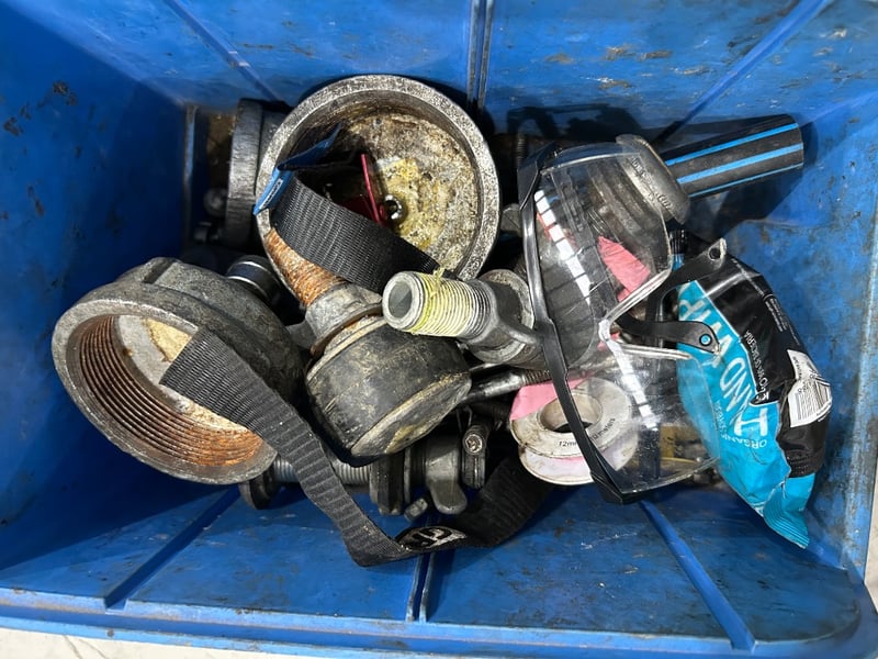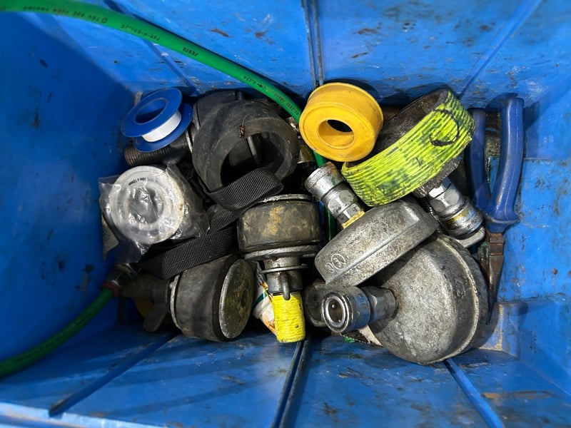 Gas pipes, water hoses, fittings, bolts, aluminium parts, first aid bag, and more. Sold as lot