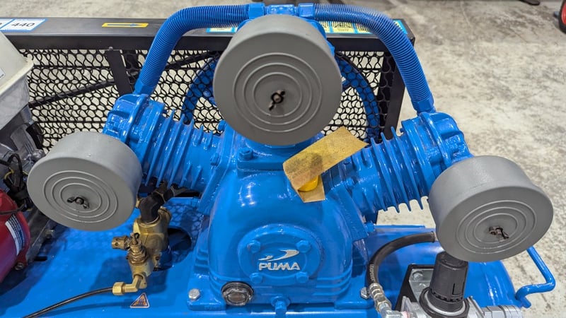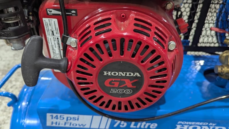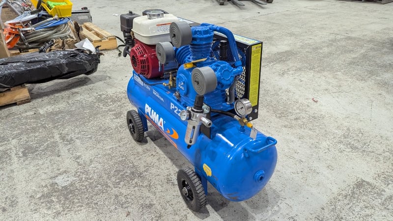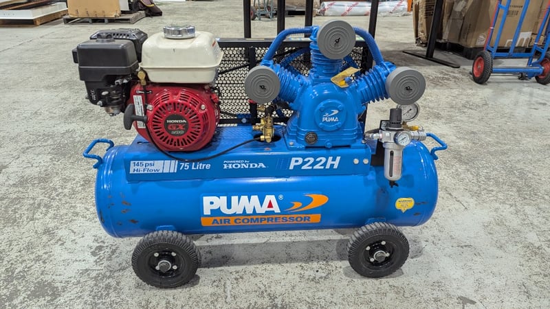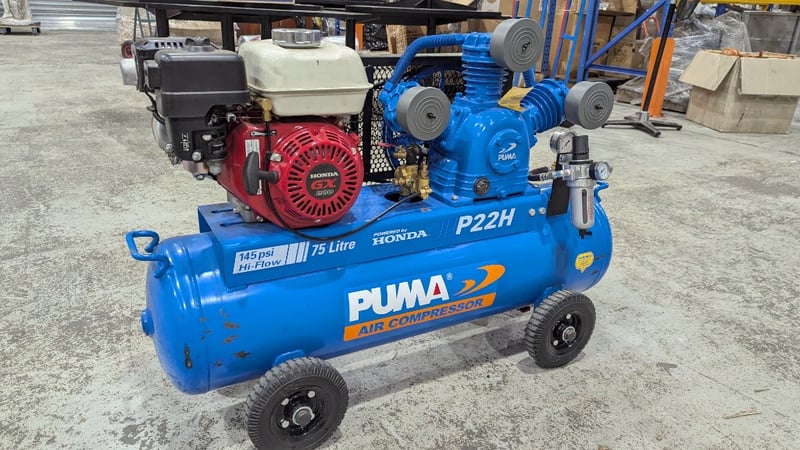 Air Compressor, Puma, Model: P22H, 75 Litre, 145 psi Hi-Flow, Honda GX 200, Year 2023, Dimensions: 90cm(H)×40cm(W)×115cm(D)