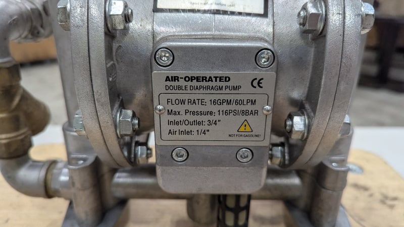 Air Operated Double Diaphragm Pump, Scintex, Air Inlet 1/4", Flow Rate: 16GPM/60LPM, On Mobile Platform, Dimensions: 39cm(H)×30cm(W)×57cm(D)