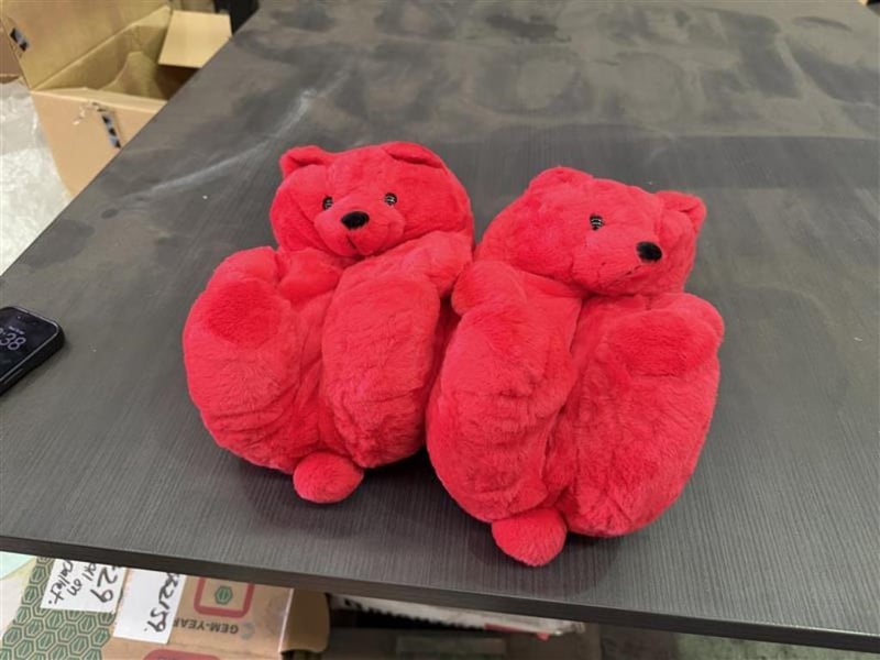 Adult Plush Animal Slippers, Red