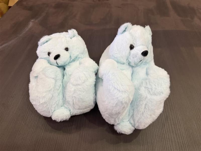 Adult Plush Animal Slippers, Light Blue