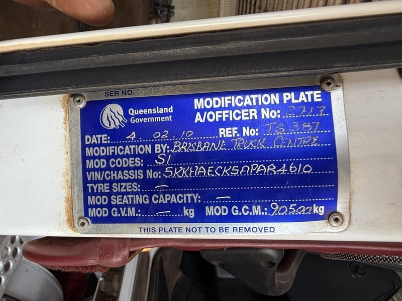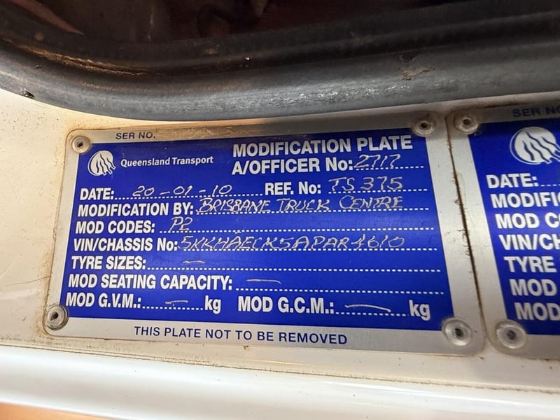 Description/Extras: Aircon, Power windows, Cruise control, Beacon lights, CD/AUX/USB Player, UHF, Hydraulics, Isolator, Fire extinguisher, Jost Turntable, Marks and scratches.