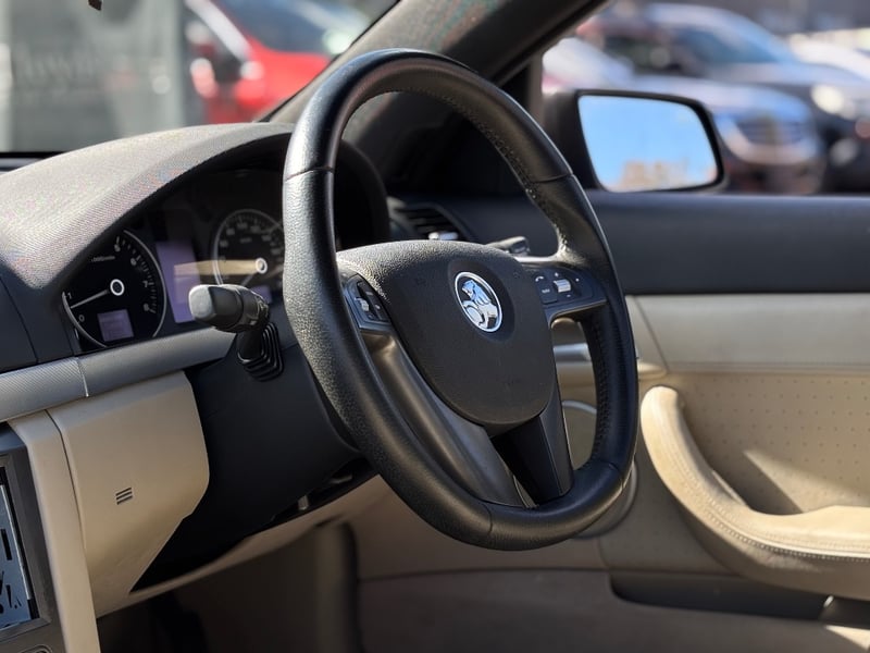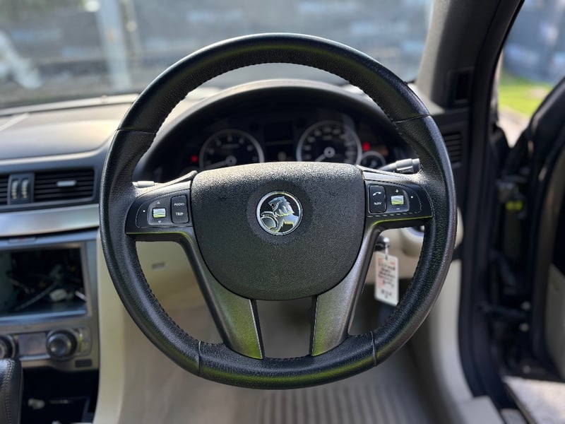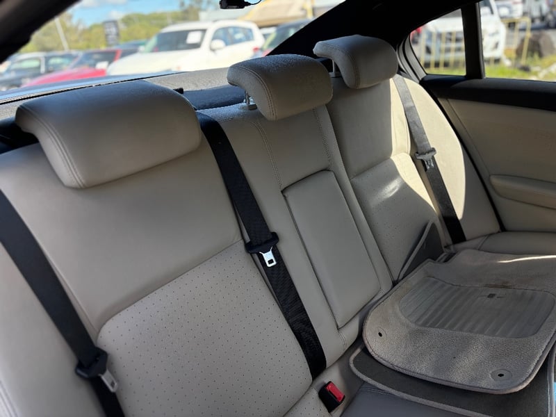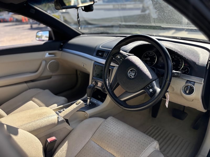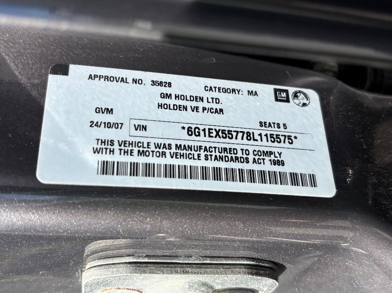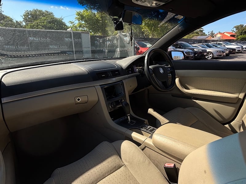 Elegant 2007 Holden Calais VE sedan in graphite grey exhibiting sophisticated motoring presence. Powered by a 3.6-litre naturally aspirated V6 engine delivering confident performance paired with smooth 6-speed automatic transmission and rear-wheel drive configuration. Odometer indicates 117,025 kilometres. Interior appointed with perforated cream and black leather dual-tone seating providing comfort and visual appeal. Dashboard features modern instrumentation with integrated climate control and audio system. Spacious boot with practical storage capacity. Vehicle displays polished black multi-spoke alloy wheels fitted with quality Goodyear tyres. Chrome accents and trim enhance exterior presentation. Well-maintained mechanical protection plan documentation present. Right-hand drive configuration suitable for Australian conditions. Current Safety Certificate (Passed on 30/03/2026) Minor scuffing to lower driver's door edge, light surface dust on exterior panels, minor swirl marks on bonnet, slight wear to perforated leather seat surfaces, minor scuffing to door frame trim. Headunit is missing.