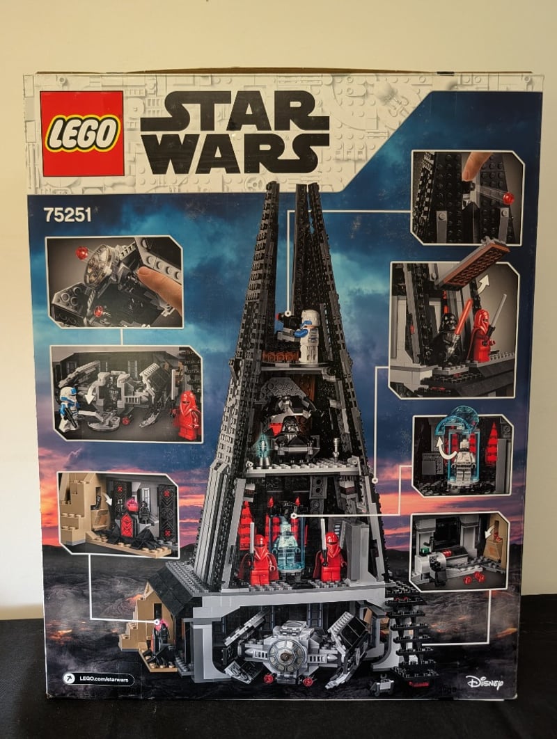 LEGO STAR WARS DARTH VADER'S CASTLE SET 75251Item Size: Height: 60cm, Width: 50cm, Depth: 30cm, Weight: 3KgLego Star Wars Set 75251 Featuring Darth Vader'S Castle, A Large Black Fortress Structure With Multiple Interior Chambers Including Throne Room, Interrogation Cell, Meditation Chamber, And Hangar BayCondition: Good - Refer To Images584530+167