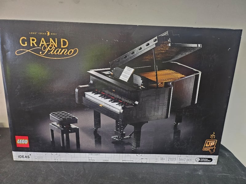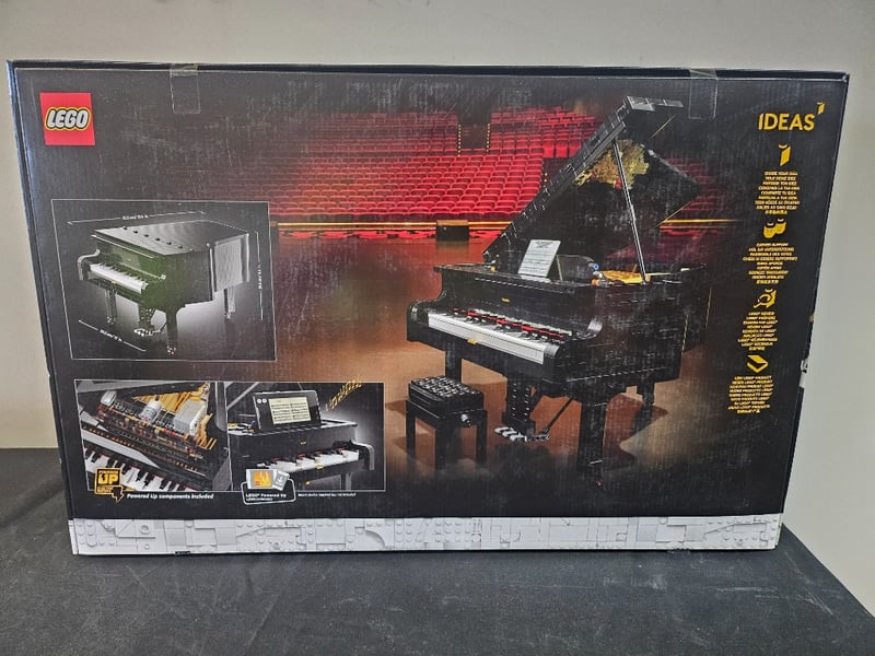 LEGO IDEAS GRAND PIANO SET #21323Lego Ideas Grand Piano (#21323) Featuring 3,662 Pieces With Functional Keys, Opening Lid Revealing Detailed Wooden Interior, Adjustable Bench, And Sheet Music Stand. Adult Collectible Set (18+) With Motorized "Up" Function For Interactive Play. Black Grand Piano With White Keyboard And Golden Interior DetailsCondition: Good - Refer To Images584547+52
