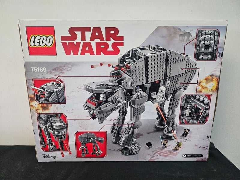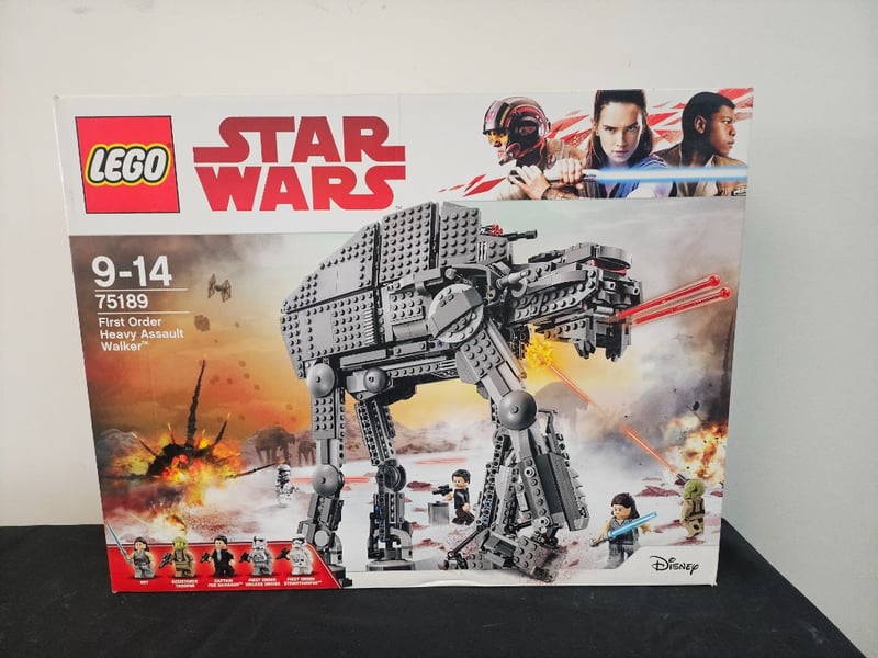 Lego Star Wars Set 75189 Featuring The First Order Heavy Assault Walker From The Sequel Trilogy. This Comprehensive Building Set Includes Multiple Minifigures, A Detailed Walker With Articulated Legs, Rotating Turrets With Red Laser Cannons, And Opening Cockpit. Suitable For Ages 9-14. Includes Intricate Mechanical Details, Firing Projectiles, And Poseable Joints For Dynamic Display.