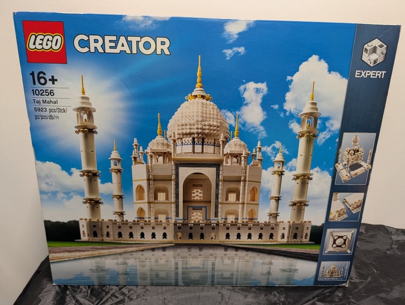 LEGO CREATOR EXPERT TAJ MAHAL SET 10256Item Size: Height: 55cm, Width: 65cm, Depth: 65cm, Weight: 5KgLego Creator Expert Set 10256 Featuring The Iconic Taj Mahal Architectural Landmark. This Advanced Building Set Contains 5923 Pieces And Is Designed For Ages 16+. The Model Showcases Intricate Detailing With Cream And Gold-Coloured Bricks, Featuring The Characteristic Domed Central Structure, Four Minarets With Golden Spires, Decorative Arches, And A Detailed Base Platform With Reflecting Pool Design. Includes Instruction Manual And Original Packaging. Expert-Level Complexity With Authentic ArchCondition: Good - Refer To Images584547+70