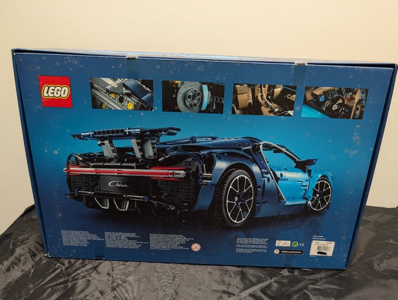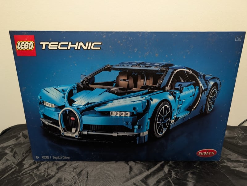 LEGO TECHNIC BUGATTI CHIRON SET 42083Item Size: Height: 40cm, Width: 70cm, Depth: 40cm, Weight: 5KgLego Technic Bugatti Chiron (Set 42083) Featuring Detailed Blue And Black Construction With Opening Doors, Functional Steering, And Articulated Suspension. Includes Brown Interior Seating, Working Pistons, And Authentic Bugatti Branding. Displayed In Original Packaging With Visible Assembly Details And Mechanical Components Visible Through Transparent Sections.Condition: Good - Refer To Images584547+71
