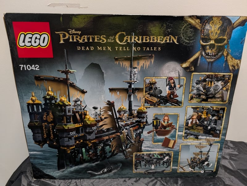LEGO PIRATES OF THE CARIBBEAN SILENT MARY SET 71042Item Size: Height: 50cm, Width: 50cm, Depth: 50cm, Weight: 5KgLego Pirates Of The Caribbean Dead Men Tell No Tales Silent Mary Set 71042, Age 14+. Features The Iconic Ghost Ship With Detailed Black And Gold Construction, Multiple Minifigures Including Pirate Characters, Articulated Masts, Rigging Elements, And A Companion Rowboat. Includes Approximately 2,292 Pieces With Intricate Architectural Detailing Characteristic Of Premium Lego Sets. Original Packaging Displays Comprehensive Imagery And Minifigure Lineup On Reverse.Condition: Good - Refer To Images584547+73