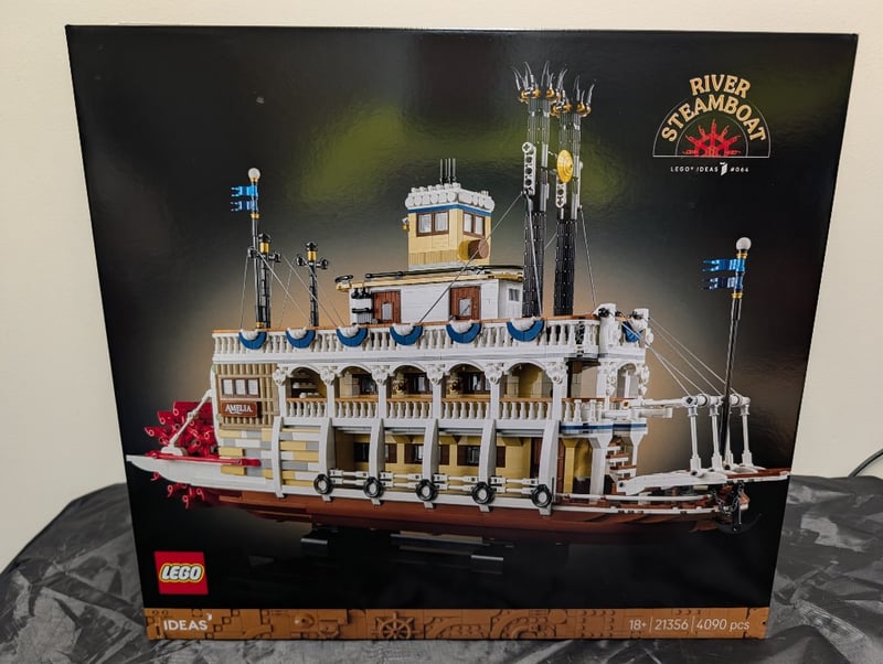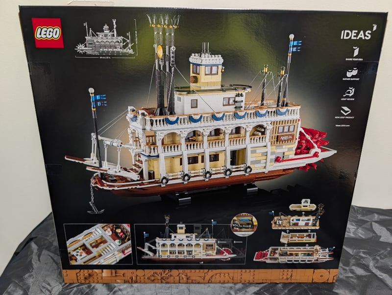 LEGO IDEAS RIVER STEAMBOAT SET #21356Item Size: Height: 38cm, Width: 56cm, Depth: 28cm, Weight: 5KgLego Ideas River Steamboat (Set #21356) Featuring 4,090 Pieces. Detailed Paddle-Wheeler Riverboat With Multi-Level White Superstructure, Tan/Cream Detailing, Red Hull, Functional Paddle Wheel, Captain'S Wheelhouse, Ornamental Railings, Signal Masts With Blue Lanterns, And Red Decorative Elements. Includes Minifigures And Detailed Interior Spaces. Sealed, Unopened Original Packaging With Printed Imagery And Specifications. Age 18+. Collectible Architectural Model Set.Condition: Good - Refer To Images584547+75