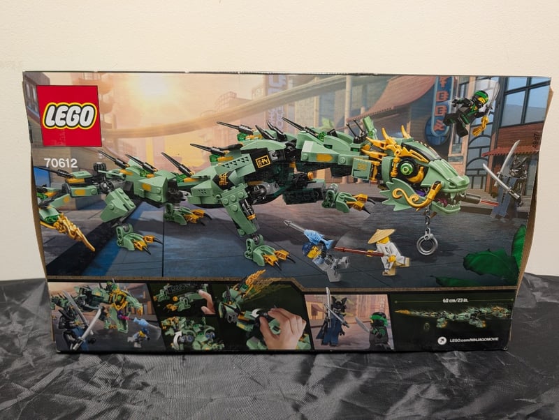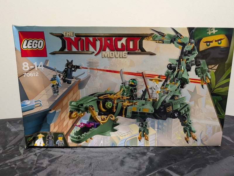 LEGO THE NINJAGO MOVIE SET 70612 GREEN NINJA MECH DRAGONItem Size: Height: 30cm, Width: 30cm, Depth: 30cm, Weight: 3KgLego The Ninjago Movie Construction Set 70612 Featuring A Buildable Green And Gold Mech Dragon With Articulated Limbs, Cockpit, And Launching Projectile Elements. Includes Minifigures And Accessories. Age Range 8-14 Years. Original Retail Packaging With Minor Wear.Condition: Good - Refer To Images584547+81