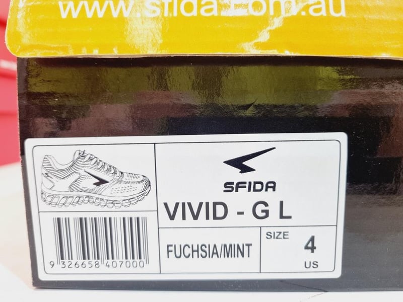 Kids Sfida Vivid-G L - US size 3 and 4- RRP: $50.00Note: Mismatched shoe sizes. One size 3 and one size 4