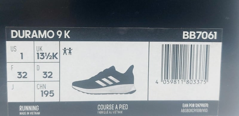 AdidasDuramo 9KUnisex Kids Size: 1RRP $120
