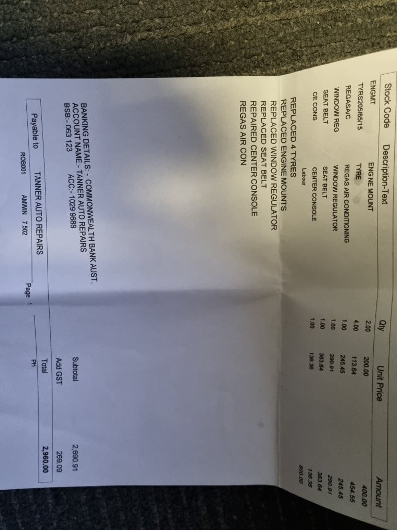 ** This vendor is not registered for GST - therefore GST is not applicable on this asset **
