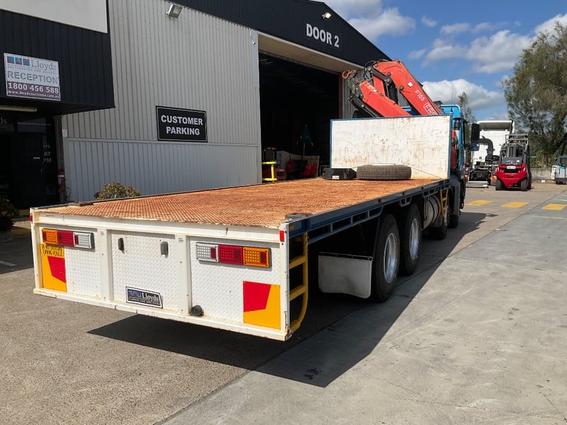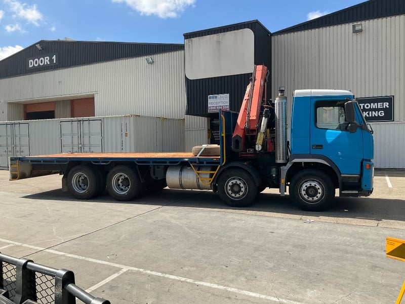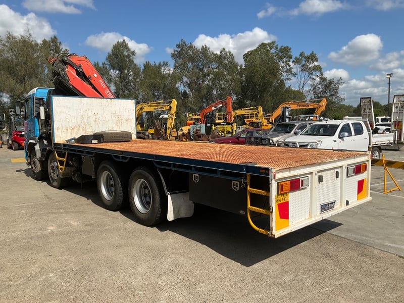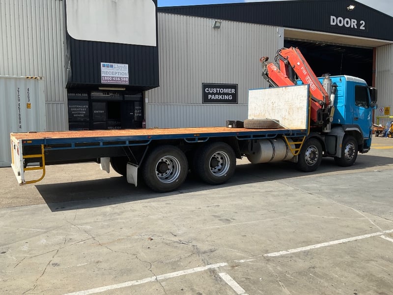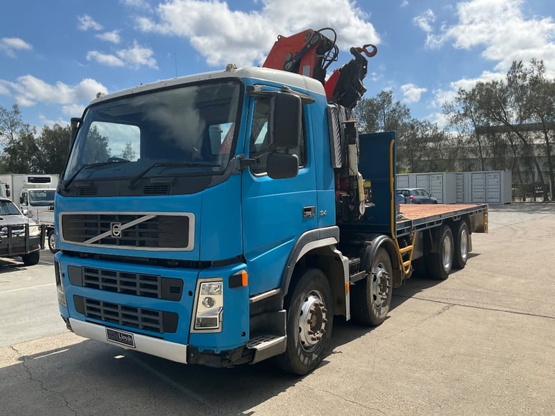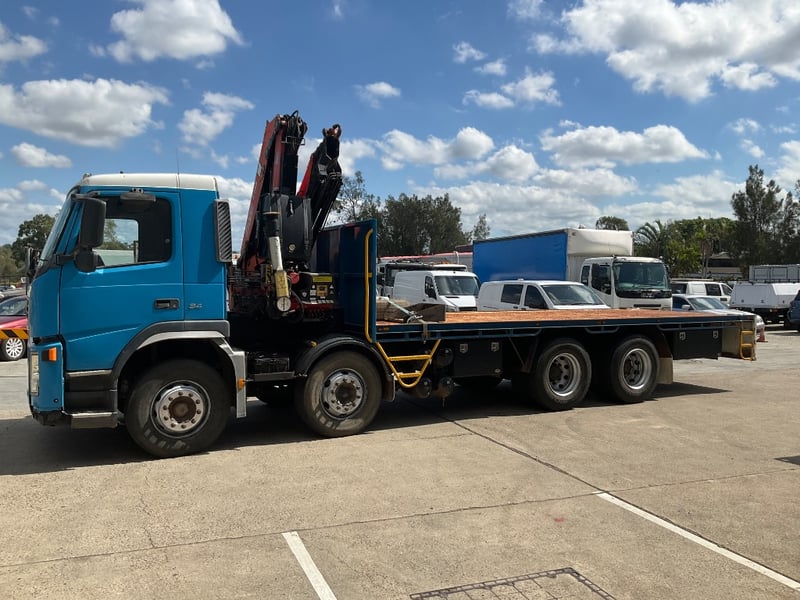 2006 Volvo Crane Truck Make: Volvo Model: FM MK2 8x4 Year: 2006 Odometer: 784,975 Kilometres Engine: 6 Cylinder diesel turbo Transmission: Automatic Seats: 2 Notes/Extras: Tray-mounted container pins, Fassi F155 crane capable of remote operation, wireless remote & second battery. 7.3M Bed, power windows, cd player, air con, crane lever controls, red arc trailer braking system, stabilisers Vendor Advises: Gearbox Issues but vehicle can still be driven manually. VIN: YV5J4CJG860128566 GVM: 34,000kg GCM: Unknown