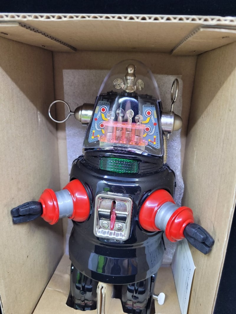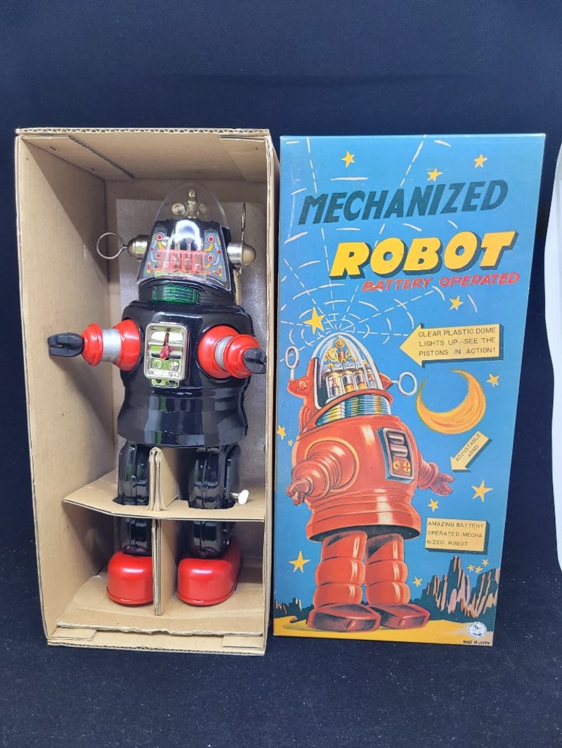 VINTAGE BATTERY-OPERATED MECHANIZED ROBOT TIN TOY WITH ORIGINAL BOX