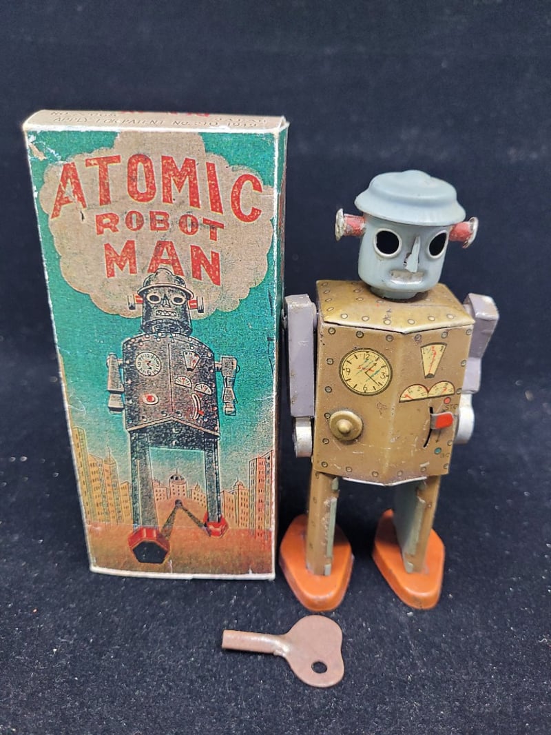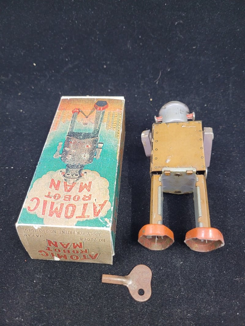 VINTAGE ATOMIC ROBOT MAN TIN TOY WITH ORIGINAL BOX AND KEYCondition: Fair - Refer To Images582912+69