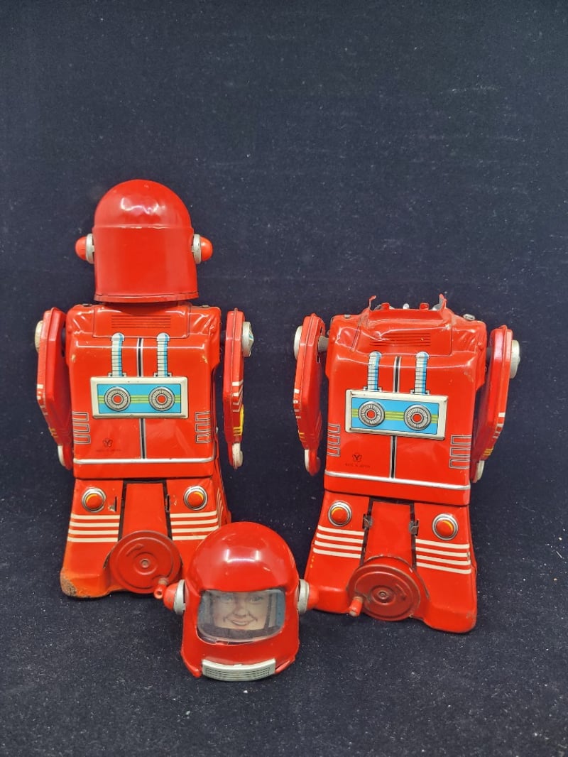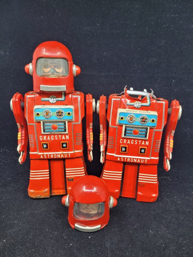 VINTAGE CRAGSTAN ASTRONAUT ROBOT TOY COLLECTION - RED TIN LITHOGRAPH ROBOTS