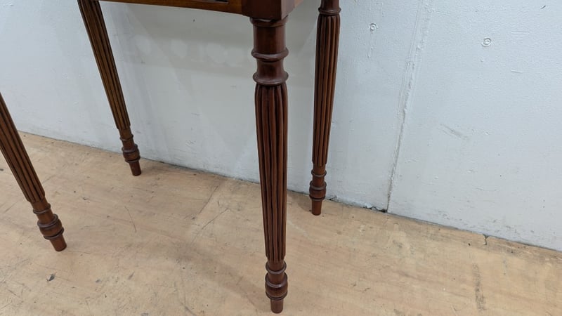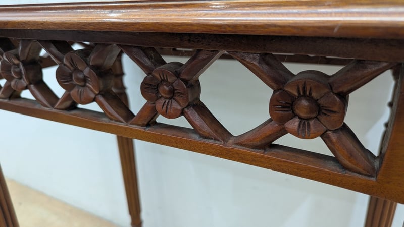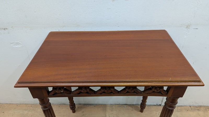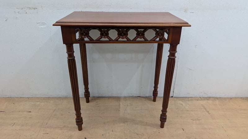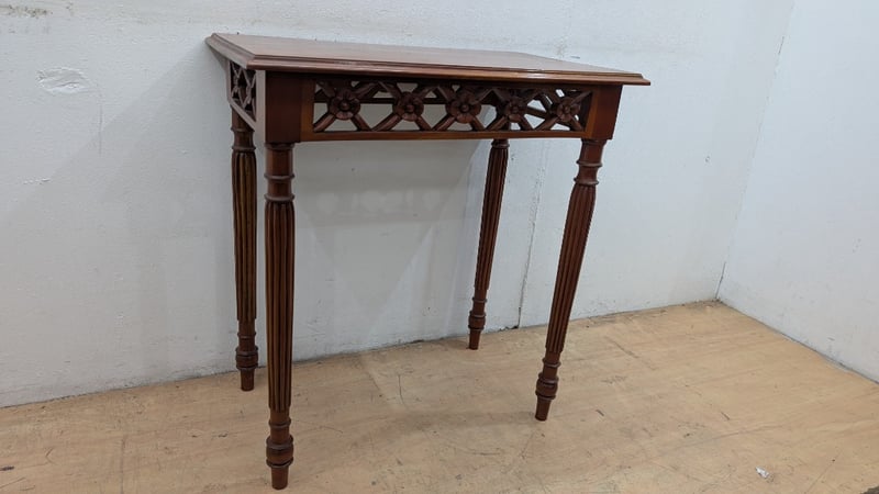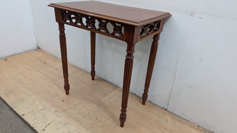 Timber Hallway Table, Timber Turn Legs, Engraved Flower Design, Dimensions: 75cm(H)×70cm(W)×43cm(D)