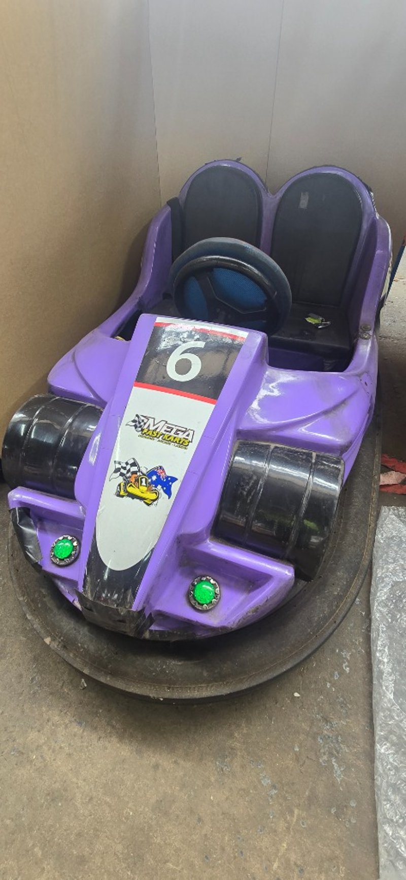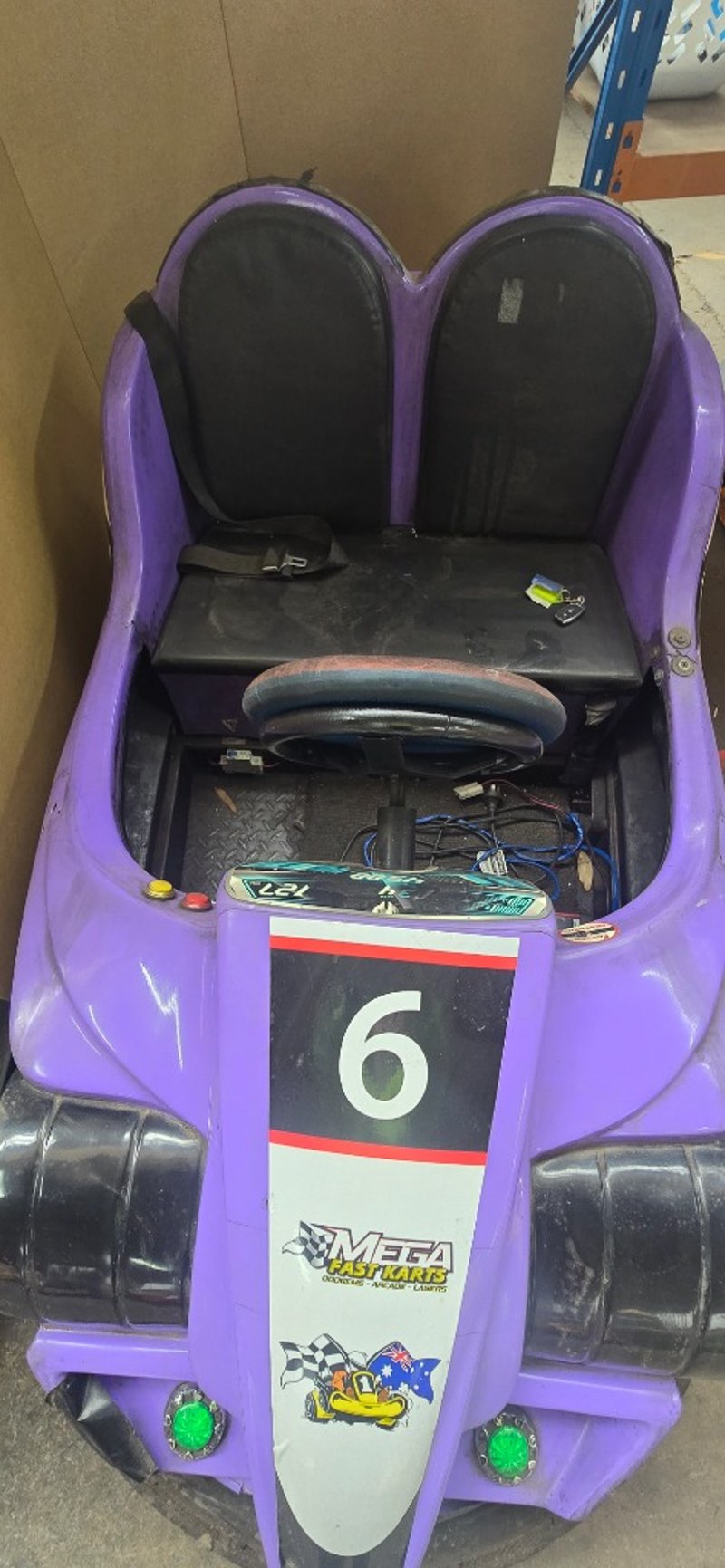 Dodgem car, Battery powered 24 volt, lithium ion phosphate car. 135 amp power, will run for 12 hours comes with charger and keys 360 degree turning