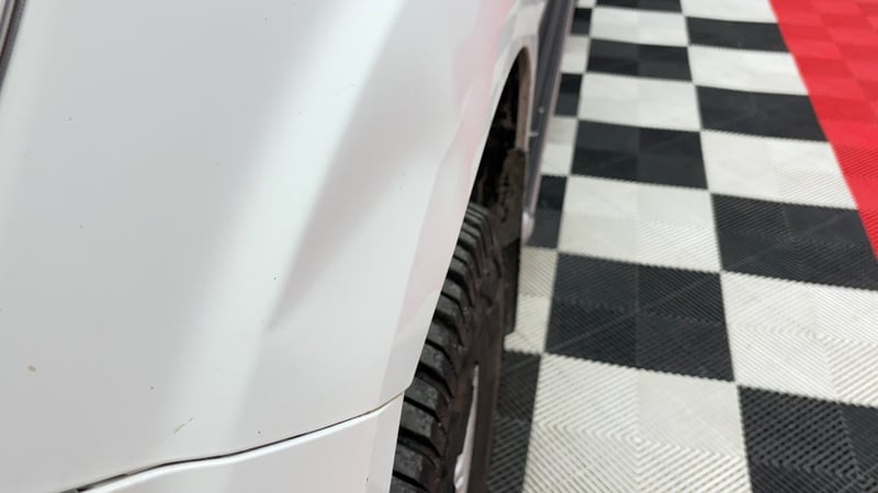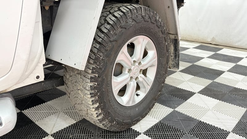Side steps, 2X toolbox on tray, seat covers on front seats, sunglasses holder on roof in front. Dent to left passenger wheel area, minor paint scratching, minor scratching on back of metal tray, scratching on all door handles.