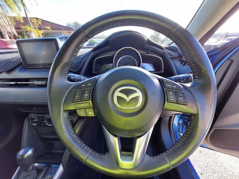 This 2016 Mazda CX-3 DK2W7A Mazdaactive is a compact Wagon finished in striking Dynamic Blue with a well-appointed interior featuring black and grey upholstery. The vehicle is powered by a 2.0-litre naturally aspirated four-cylinder petrol engine paired with a six-speed automatic transmission, delivering reliable front-wheel-drive performance. With 138,708 kilometres on the odometer, this five-door, five-seat wagon presents as a practical urban runabout. The cabin includes modern conveniences such as a touchscreen navigation system, climate control, and power window controls. The vehicle comes complete with its original owner's manual and comprehensive service history documenting regular maintenance intervals. The exterior displays minor cosmetic wear consistent with age and mileage, whilst the alloy wheels and overall presentation suggest conscientious ownership. New updated Sat Nav Map SD Card. Minor paint scratches to driver's side door, minor scuff marks to front bumper lower section, light surface scratches to bonnet, minor wear to door mirror trim, general light swirl marks to paintwork consistent with age. Inspection recommended.