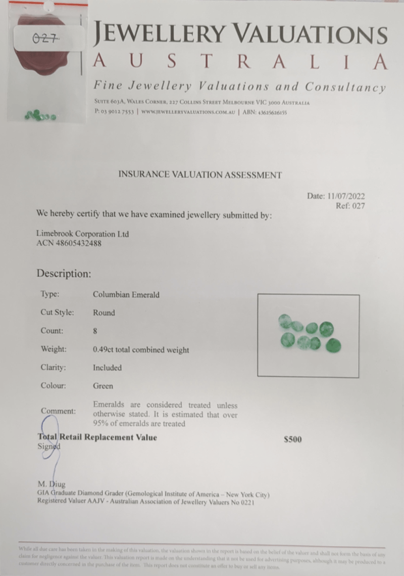 This valuation has been conducted by an independent third-party professional. The valuation amount is an assessment by the issuing valuer and does not reflect the auction value of the item.