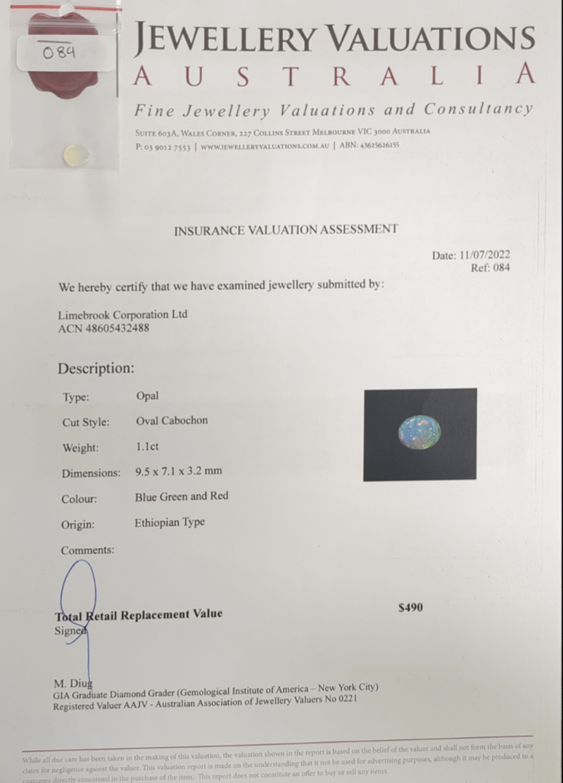 1.1CT OVAL OPAL. ADDITIONAL GIFT CARD $50, OURGIFT2U.