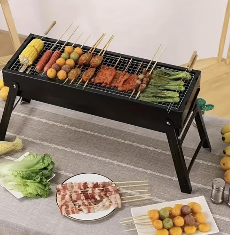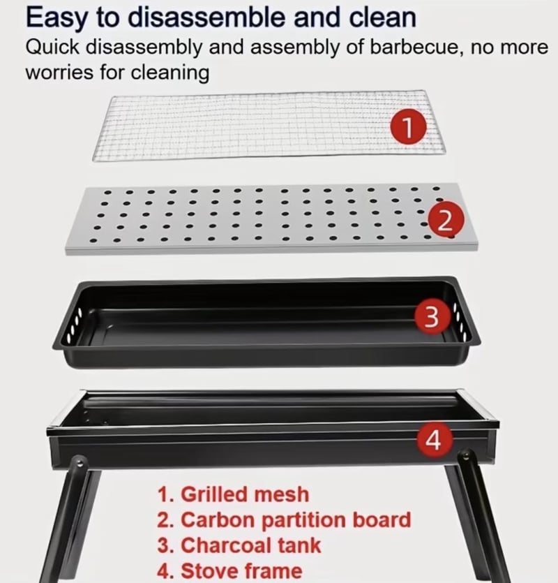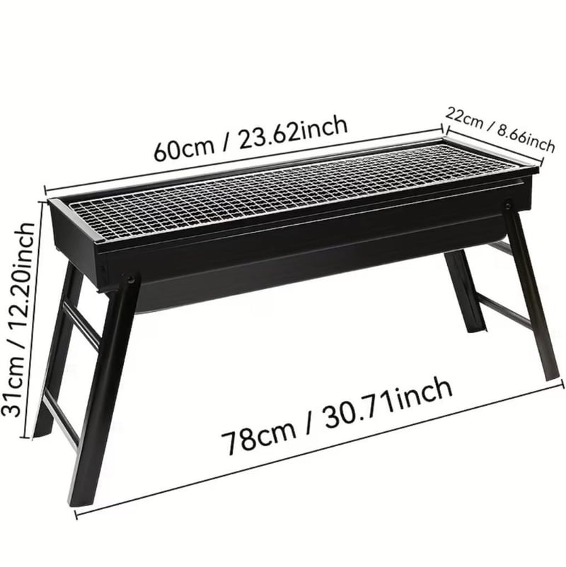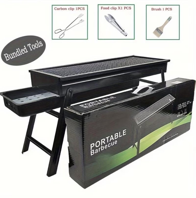 Portable Stainless Steel Charcoal Grill - Foldable BBQ Stove for Outdoor Picnics & Camping, Compact And Collapsible Barbecue Grill Featuring Adjustable Height & an Integrated Side Shelf